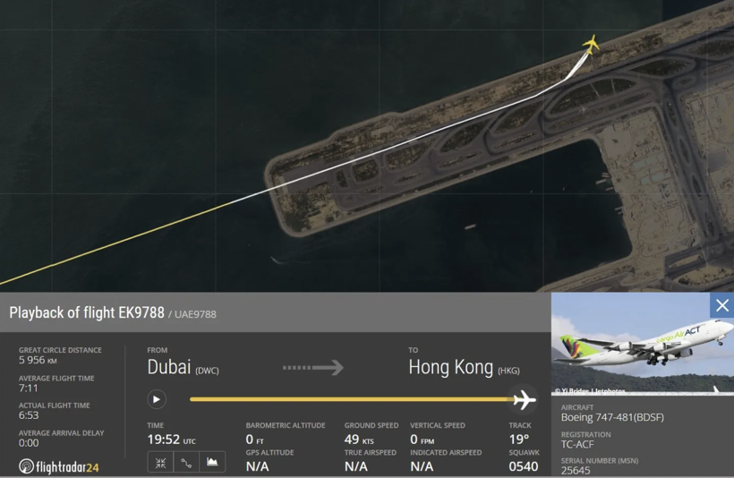 Emirates Havayolları yaptığı açıklamada, EK9788 sefer sayılı uçağın Türk şirketi ACT Havayolları’ndan kiralanmış bir Boeing 747 olduğunu bildirdi.