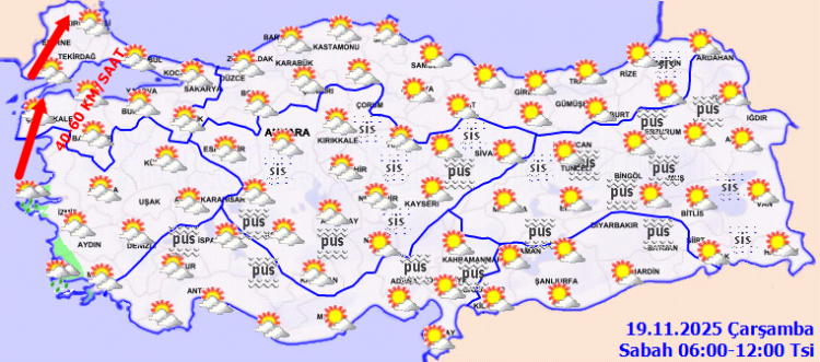 Rüzgarın, Marmara’nın batısında güney ve güneybatı yönlerden kuvvetli (40-60 km/saat) olarak esmesi beklendiğinden yaşanabilecek olumsuzluklara karşı dikkatli ve tedbirli olunmalıdır.